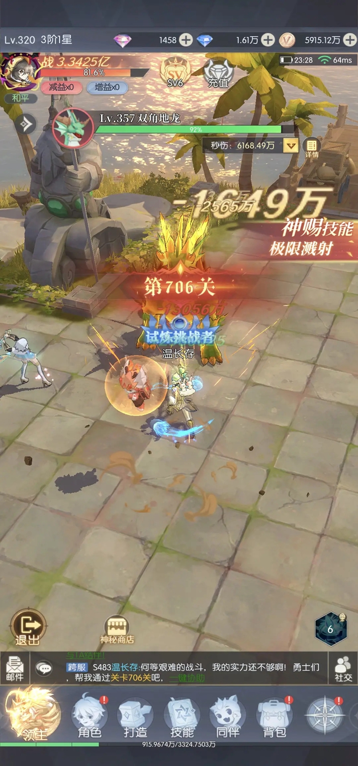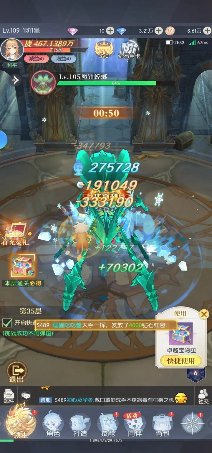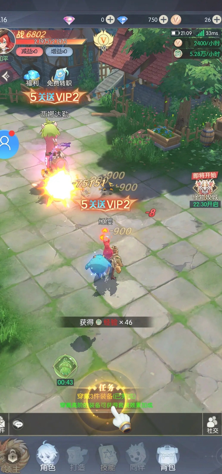 经验副本:每天两次,副本根据打怪的波数结算经验,尤其是开服第一天,先不要着急单人自动匹配打副本,先提升战力,频道邀请其他玩家一起刷副本,建议找比自己战力高的或战力相近的组队,找服务器大佬带刷是最靠谱的,划重点可以跨服组队,千万不要自动匹配,每日凌晨五点刷新次数。