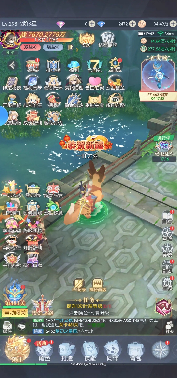 主线任务:这个比较简单,只要按照任务要求去参与就能轻松完成,前期任务交互很多,完成后能快速获取经验,首日冲等级主要方式之一。