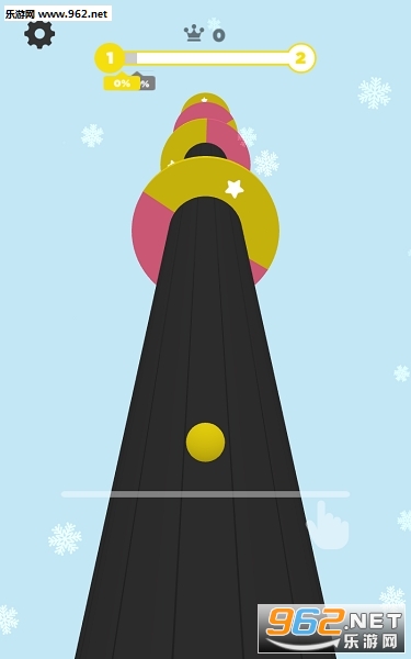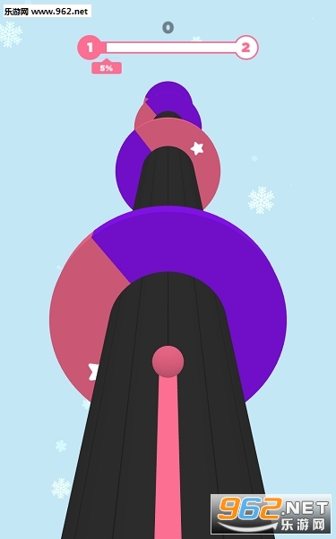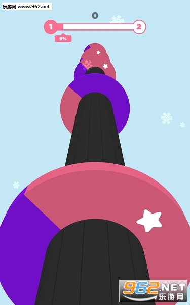 游戏的玩法非常考验人的反应速度和眼力,玩家操作小球在圆形的跑道上前进,跑道有不规则的旋转柱子,玩家必须撞击想要颜色的柱子才能继续前进!