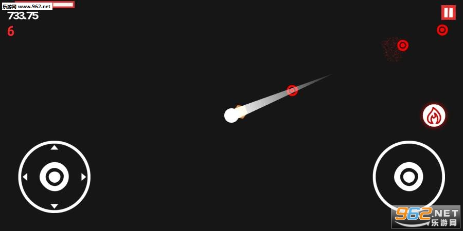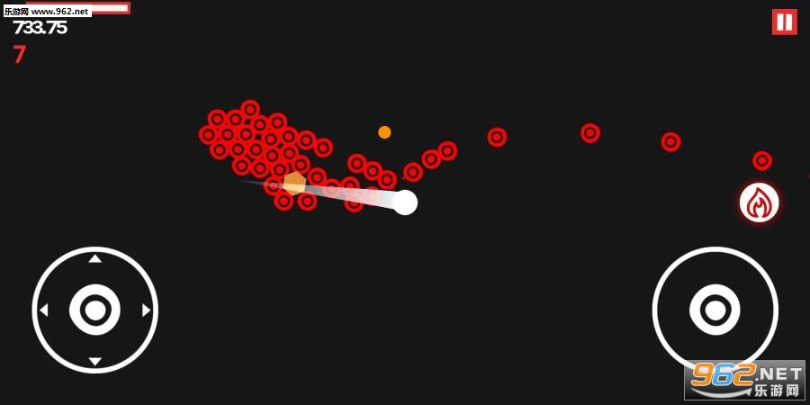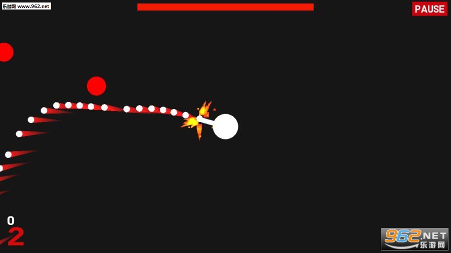 游戏拥有着极简的矢量风游戏画面,简单易上手的操作手法让你爱不释手,在游戏中玩家需要控制白球进行射击,不让红球接触到自己即可,来看看你能拿多少分吧!