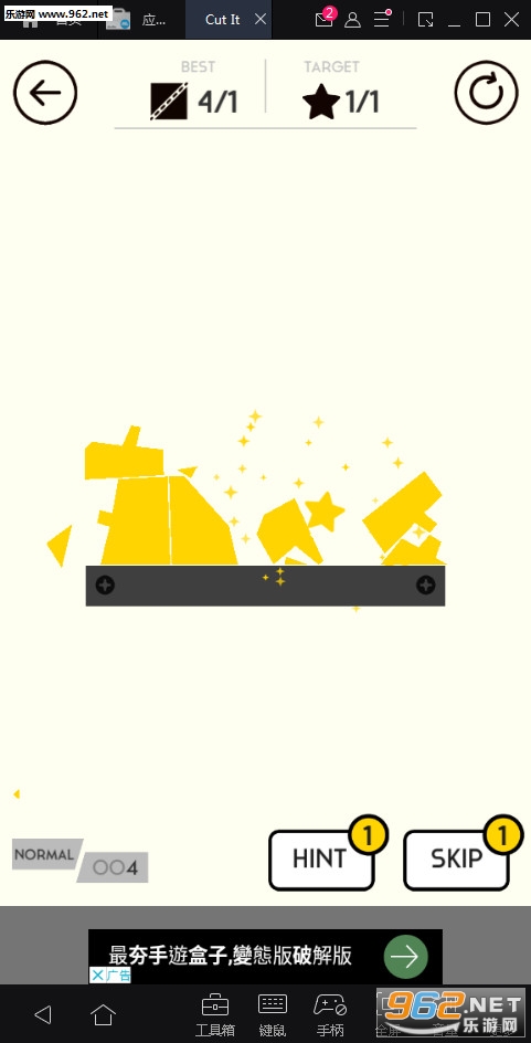 《大脑拼图(cut it)安卓版》是一款2D卡通风格的休闲益智类游戏。在游戏中,玩家将需要用手滑动切开一个形状,变成几瓣后的碎块砸到小星星就算通关了。游戏画面简洁,玩法也简单易懂,音乐比较让人放松。