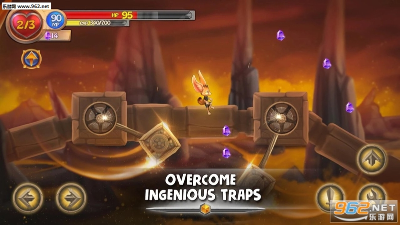 《勇敢狐狸》是一款2D横版闯关类冒险手游,玩家将扮演游戏中的主角——小狐狸Fin,穿过山丘,森林,草丛与雪地等7个神奇的世界,打败路途中的敌人和大BOSS,收集尽可能多的宝石,找到隐藏的水晶文物,最终掌握魔法,拯救世界!