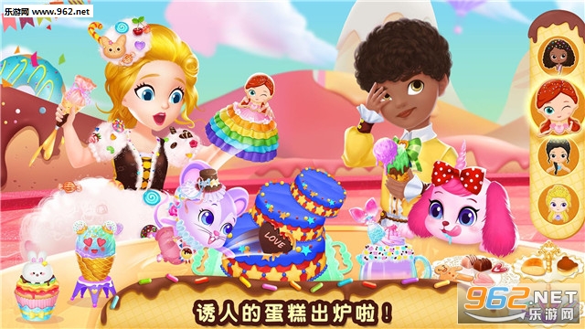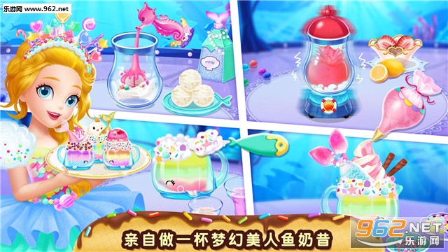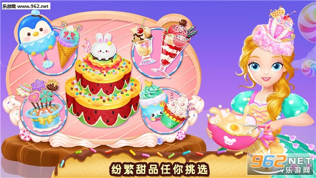 游戏提供8款甜品,亲自动手制作造型可爱的动物霜淇淋、公主蛋糕,或是充满浪漫气息的美人鱼奶昔、鲜花饼干,相信你做的甜品一定美味无比。