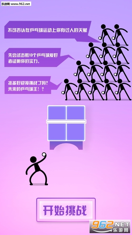 一款十分魔性的火柴人主题风格的乒乓球手游,挑战你专注力以及反应速度,成为一名顶级的乒乓球运动员,点击的方式来进行回击,感兴趣的玩家快来下载吧!