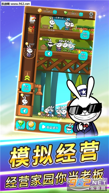 化身小兔叽,开启激萌的放置经营之旅,收菜、盖楼、征服世界,成为最富有的农业大亨!