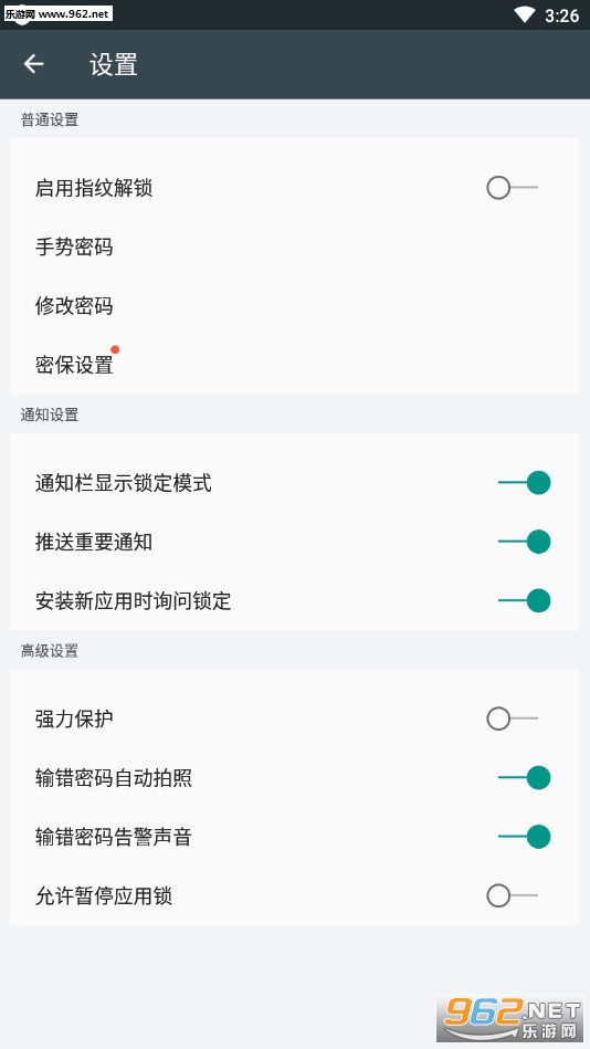 图案密码、数字密码、指纹三大方式加密任何你想要加密的应用;
