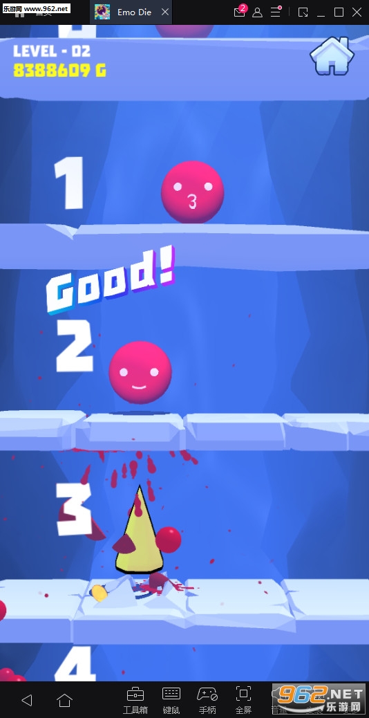《EMO之死(EMO DIE)安卓版》是一款2D卡通休闲益智类游戏,在游戏中,玩家可以控制一个红色圆锥,圆锥会左右横移,你需要在合适的时机点击屏幕使圆锥向上顶出刚好角度戳破上方的红球。游戏到后面红球的防御会加强。