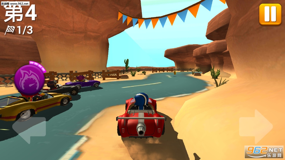 趣味的竞速游戏,游戏只有着左右方向键,如果有道具点击使用即可,没有qq飞车那样多的操作,有着多种赛道可以挑战,根据表现来获得星级评定,喜欢的朋友可以下载试试。