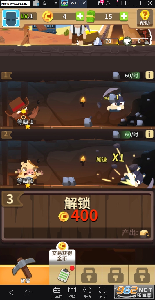 解锁更多的地雷,产生不同的矿石,完成订单是在狂野的西部大亨!