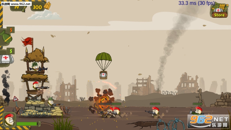 《Angry Eggs游戏》是一款卡通风格的射击战斗游戏,这是一片前线的战场,无数的敌人前仆后继而来,玩家们需要镇守住你所负责的防御塔,合理的调动士兵进行布防,一个塔楼可以放置三名士兵,他们将会使用不同的武器,有伤害超高的火箭筒还有步枪机关枪,每一种枪支都有子弹数量的限制,每一场战斗之中来能使用数次的空中支援,将大范围的攻击所有敌军,并且造成巨大的伤害,效果十分惊人。