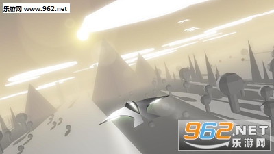 游戏整体的美术风格和物体造型都比较单一,大片单色的方方块块、尖尖角角肆意横陈,粗暴得很,但全力逐日的飞行器以及路上亮闪闪的buff物品让游戏世界鲜活而具有无限动感。