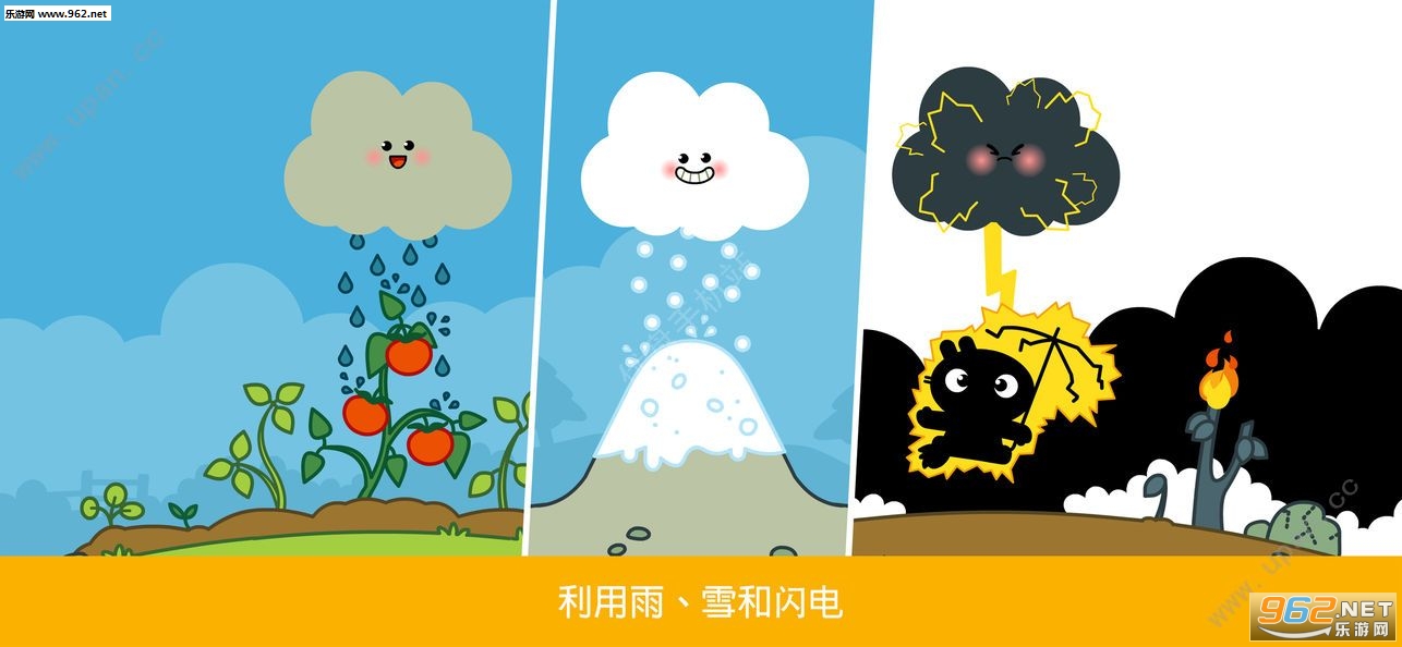 2、云朵的功能非常多,可以下雨下雪还能闪电霹雳,玩法也是非常丰富的;
