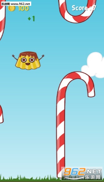 是布丁的圣诞大冒险,玩家需要控制布丁不停的跳跃避开天上和地下的障碍物,游戏中障碍物大多是巧克力棒的形式,再加上布丁形象的主角会让玩家感受自己到了甜品世界!
