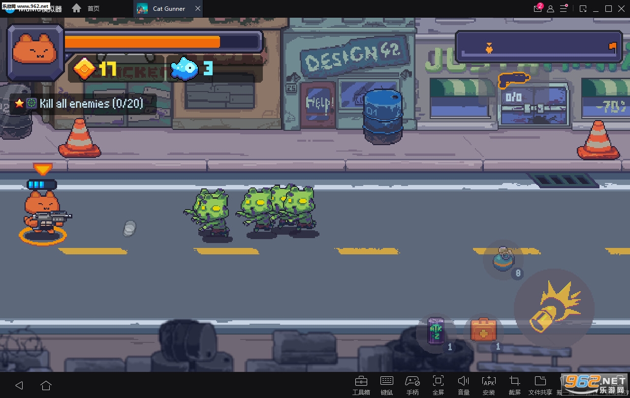 《超级力量安卓版》是一款2D像素卡通风格猫咪丧尸题材的横版射击闯关类游戏。在游戏中,我们是在一个喵星人星球上,但星球遭遇了生化感染,猫咪们都变成了丧尸喵,我们的任务就是消灭他们,获取金币和小鱼干!