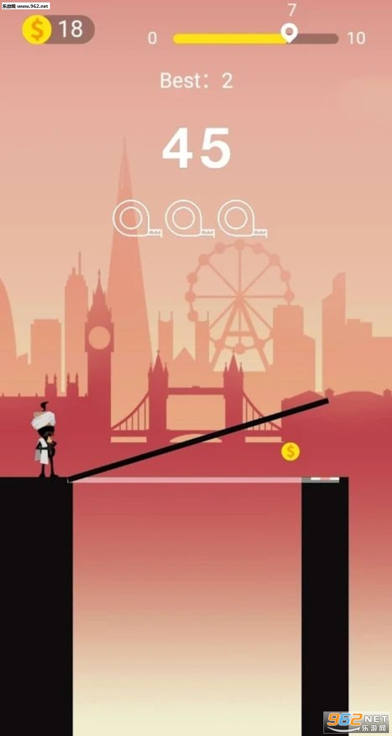 《跨越差距》是一款十分考验玩家反应能力的休闲手游,玩家需要放置梯子让火柴人在城市的高楼大厦之间穿梭,按住屏幕就可以控制梯子长度,不能过长也不能过短,否则都会到导致火柴人从高楼中坠落,游戏难度比较大,快来挑战吧!