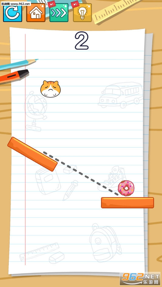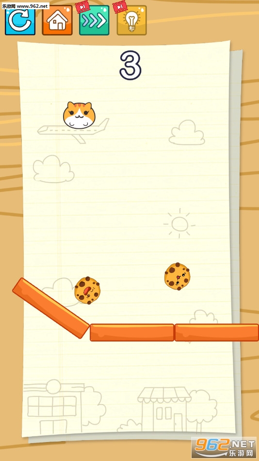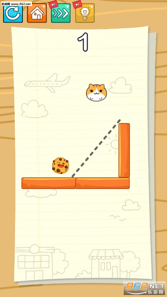 画线益智闯关游戏,玩家可以画出合适的轨道让猫咪吃到可口的饼干,游戏还是比较简单的,如果想不出来方法还可以点击灯泡按钮来获得提示,喜欢的朋友可以下载试试。