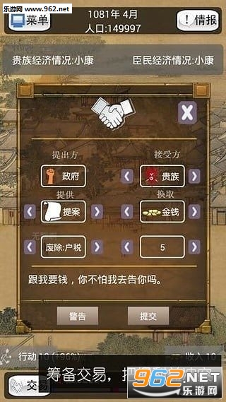 3、游戏当中我们能够搜集到更多的民脂民膏来建设自己的政府,获取更多不恰当的收益!