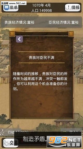 在这款游戏当中我们将会化身为一个非常厉害的官员,在这个世界当中完成各种各样的人物,并且还能执行一系列的制度来让你的人民过的更加幸福,想当贪官还是好官完全在你的一念之间!
