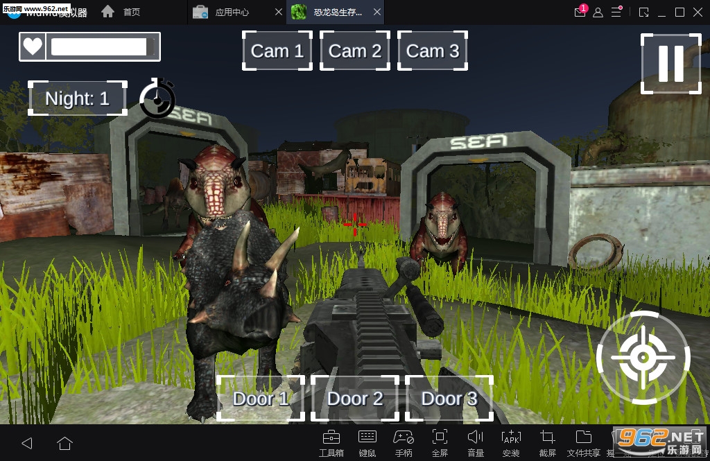 《恐龙岛生存之夜安卓版》是一款3D写实风格以恐龙为题材的动作射击类游戏,在游戏中,玩家将端着枪面对恐龙的围剿。恐龙会从三个门中涌入,玩家需要守住阵地,当然你也可以选择性按下三个大门的关闭开关。
