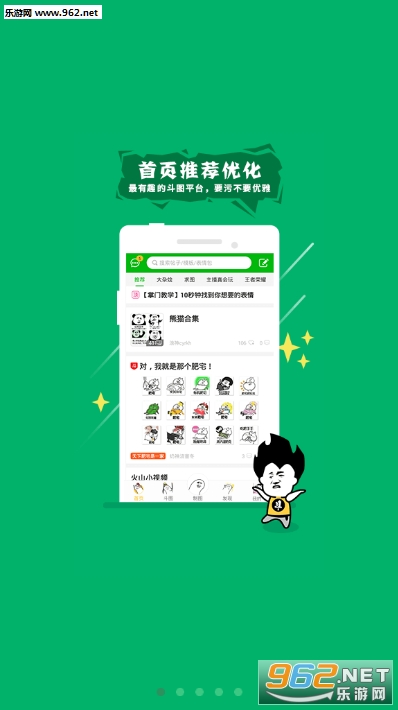 斗图大会app是斗图神器官方绿色版软件,喜欢恶搞、制图的朋友们都能在斗图大会app这里分享图片,交流学习制图经验,还有神级配文推荐,不噎死对手决不罢休,斗图大会app让人人都是“表情帝”。