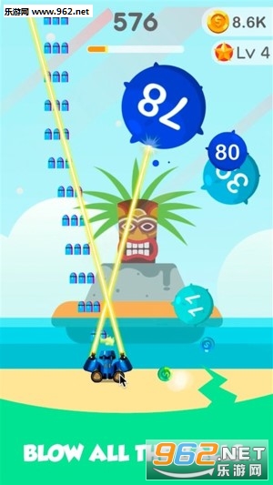 弹跳球爆炸是新的街机游戏,允许你使用大炮射球,其中包含球的数量。射击时球的数量会减少并在零时消失。