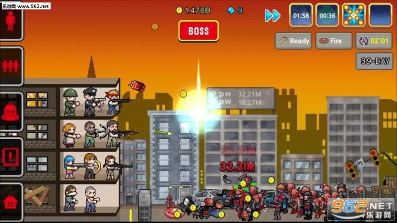 抓住僵尸,收集金币,使主人公和同伴们迅速生长,布置各种设施