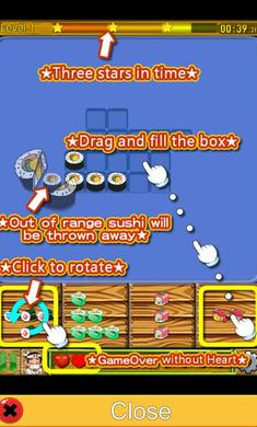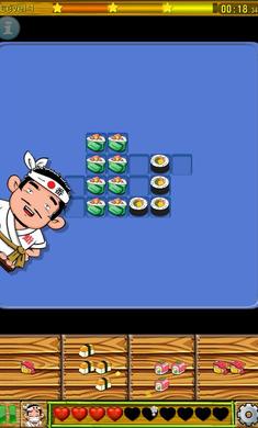 简单的游戏目的,就是透过荧幕下方出现的寿司组合,把游戏主画面上隐藏图形填满,使其回复原图。