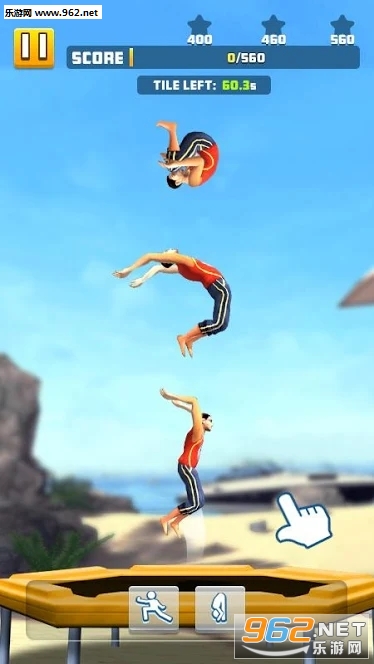 在您的家门口,后院,学校以及码头的蹦床上前后翻滚,跳高和反弹,掌握精彩绝伦的翻转技巧。用你的手指,灵活的控制你的人物,努力保持平衡,挑战高难度的蹦床得分挑战!