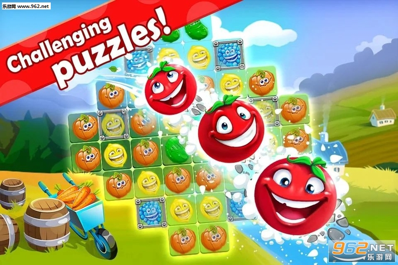 《菜园消消乐》是一款超好玩的三消游戏。可爱的精美画面、上手很容易、非常可爱的小鱼形象、引人入胜的益智游戏。进入菜园消消乐后你就了解为什么排成菜蔬比排成冷淡的宝石更有兴趣的!而且蔬菜比糖果更有益的!