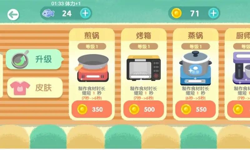 厨房可以通过增加等级和不同的装饰来升级,以便用更多的食材和食材来烹饪。