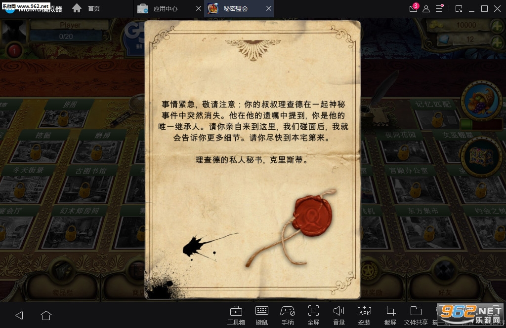 有一些人可以自由地进入魔法世界,具有这种特殊能力的人聚在一起,久而久之,探寻者盟会这一秘密组织便应运而生。你亲爱的叔叔理查德是探寻者盟会的精英成员,但他突然失踪了,你因此而感到痛苦、绝望,但你随后意识到,你也具备这种魔法力量,从而也是唯一个能够找到他的人. 能否找到你失踪的叔叔、能否保护盟会的神圣宝物、能否把威胁整个秘密盟会生存的危险扼杀于摇篮之中,就看你的了!