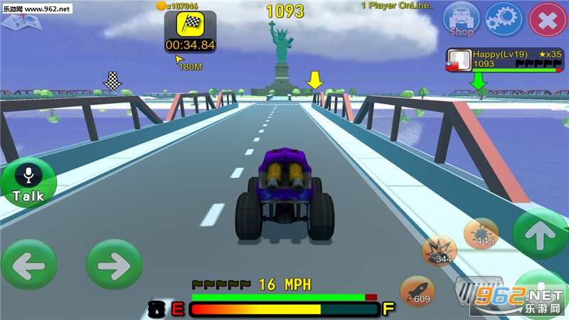 这是一款多人连线的3D立体赛车夺旗游戏,每个游戏分区最多可以同时容纳32名玩家参加比赛。