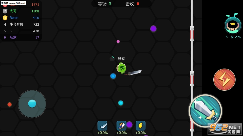 游戏玩法很简单,只要我们像贪吃蛇一样,吃地上的小点就行。只不过我们得绕过比自己强大的英雄。