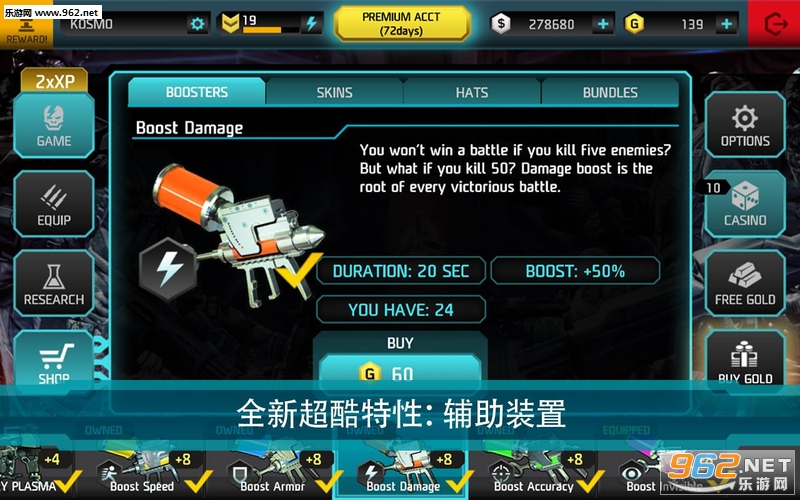 体验超酷特性:辅助装置(加速、装甲、加伤害、加瞄准、隐形)
