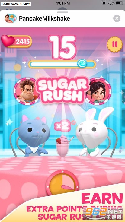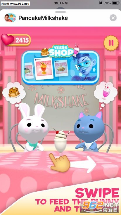 Pancake Milkshake游戏是最近很多的一款小游戏,这款游戏是根据迪士尼的电影《无敌破坏王2》彩蛋改编的游戏,这个电影中的彩蛋真的是多到导演自己都数不清,于是就有粉丝专门制作了这款游戏,最有趣的应该就是一个小兔子和猫咪在桌子上偷吃食物,这款游戏就是根据这个场景打造的,玩家们需要喂更多正确的食物给对方吃,这样才能得分。