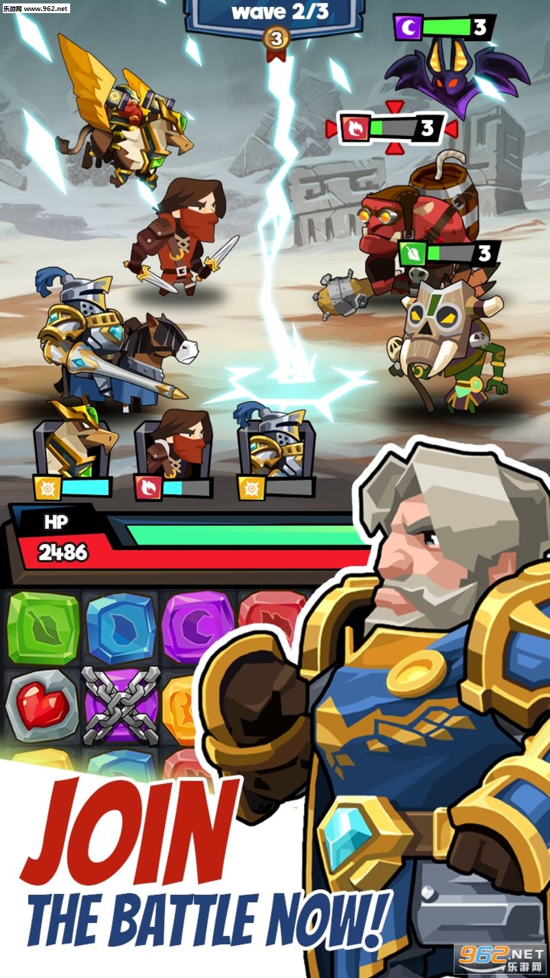 通过匹配谜题帮助雇佣兵与组合,通过击败邪恶的怪物找到王国的和平!