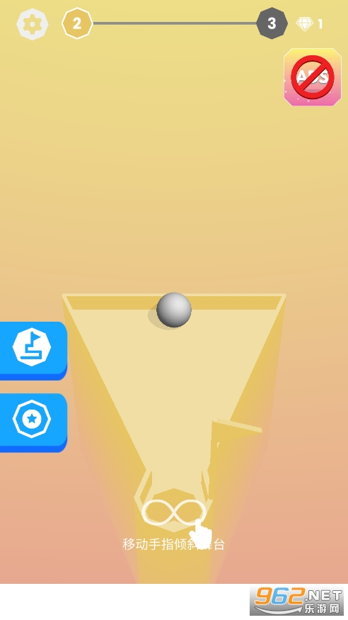 玩法就是通过手机陀螺仪来控制小球移动,小球需要在一个摩擦力极小的平台上各种转弯,然后进洞,是真的滑,比德芙还丝滑的跑道。
