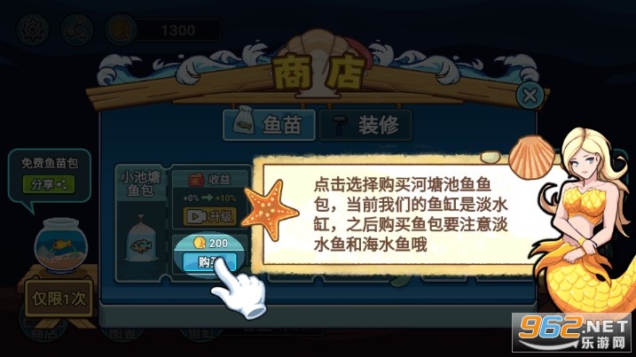阳光水族馆游戏鱼缸、鱼苗包介绍: