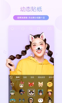 丰富立体的2D、3D动态贴纸,贴合人脸,精准跟随,让你的表情灵动十足。