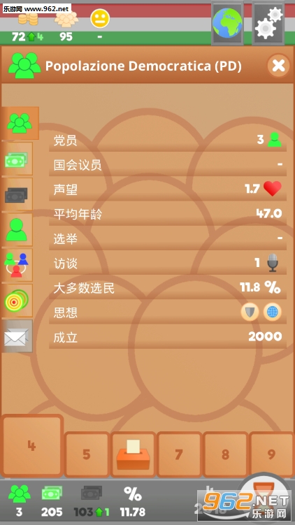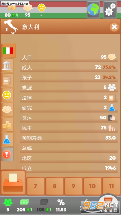 非常讲究策略的一款游戏,拥有详细的教程,玩家在游戏中就需要把国家发展的更好,提高人民的幸福指数,可玩性很强,适合用来打发时间。