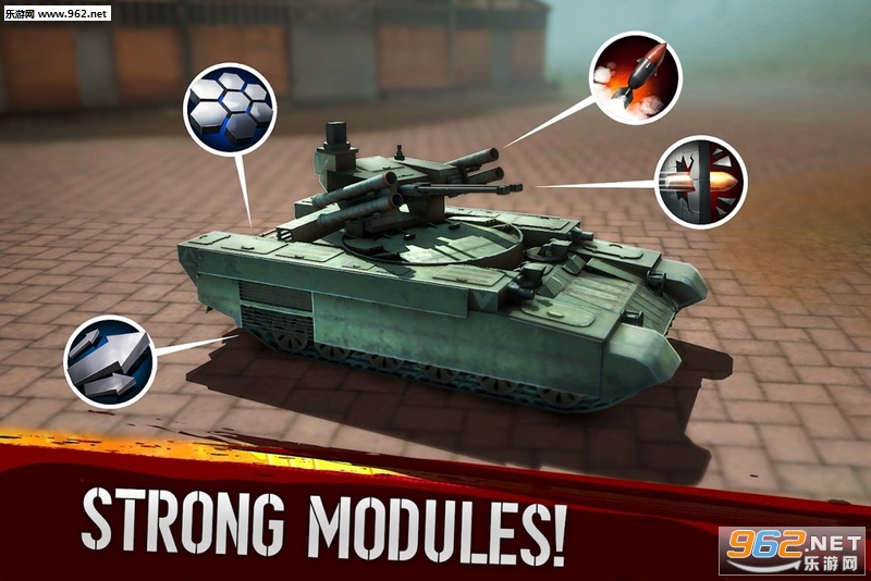 战斗模块 - 这些包括坦克上的主动和被动车身套件,如凝固汽油弹,寻的导弹,加力燃烧室,X射线和更多。使用不同的模块调整您的战略和战术战斗技能。任何模块都可以连接到任何油箱。