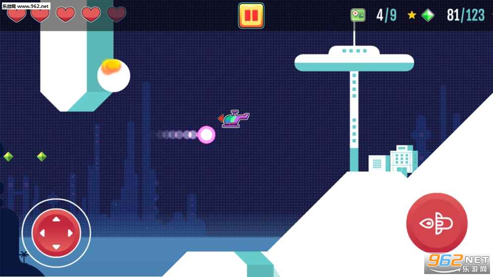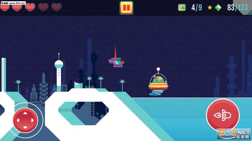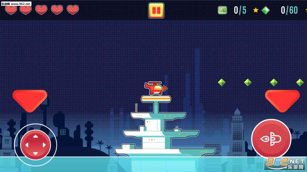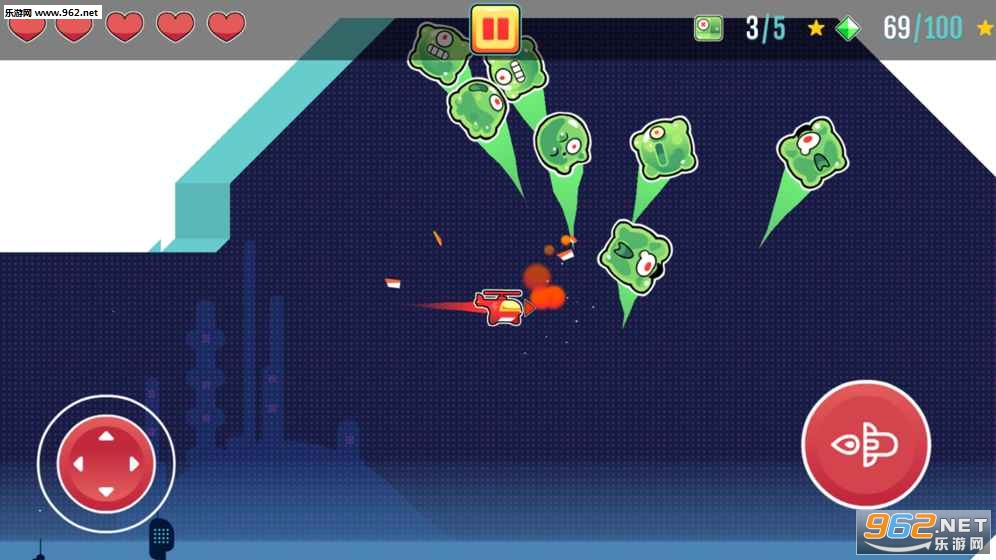 左边控制飞机行驶的方向,右边控制发射导弹,玩家驾驶着飞机开始自己的冒险之旅。收集沿途的金币和道具,打败所有拦路的怪物,在有限的生命中闯关成功吧!