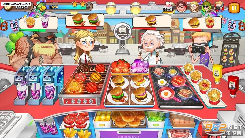 一款超有趣的烹饪手游,顾客的忍耐程度分为三个等级,随着时间的消逝,他们会变得越来越焦躁不安,而这些情绪都通过脸部表情生动形象地表现出来,看上去十分滑稽。努力锻炼自己的烹饪技艺吧,同时升级你的厨房设备,为顾客提供更加优质的服务,让他们心满意足地走出餐厅。喜欢的小伙伴们一定不要错过了!