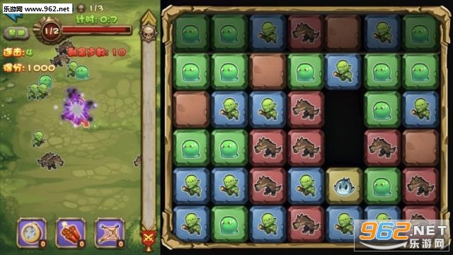 砖块三消时,会召唤出砖块中的怪物成为我方军队,和关卡boss进行战斗,打败关卡中的3个boss就是通关目标!