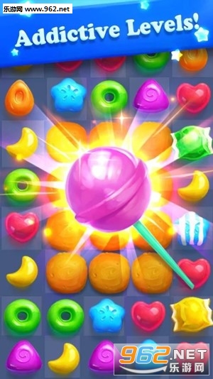 移动甜美的糖果,让三个一样的糖果在一条直线上,就可以收集和粉碎它们。