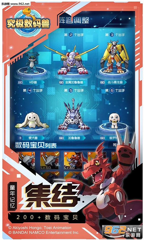 《究极数码兽》是一款以经典动漫《数码宝贝》为故事背景的立体卡牌游戏。游戏冒险的形式,搭配同伴羁绊卡牌系统,经典重现《数码宝贝》的动画剧情。同时拥有丰富的数码兽究级进化体系,打造属于您的数码兽战队与它们并肩作战,让您重温儿时的热血与梦想。