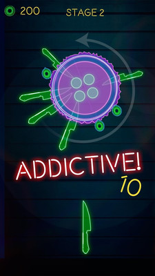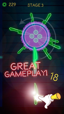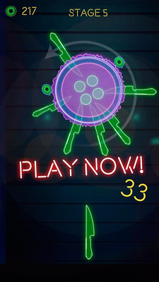游戏的主要玩法就是掌控飞刀对靶子进行进攻,让飞刀刺中苹果,就可以得到更高的分数。