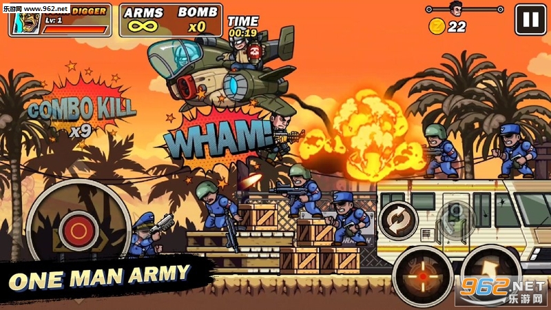 《金属突击队》是一款十分刺激的横版动作射击手游,带上你的武器装备,孤军深入敌人阵地,像个纯爷们一样去战斗。运用各种武器装备将所有的敌人轰成渣。不要觉得以一敌百是件很难的事,只要你反应够快,一切皆有可能。享受爆炸火光带来的无限快感吧!喜欢的小伙伴们赶紧下载吧!