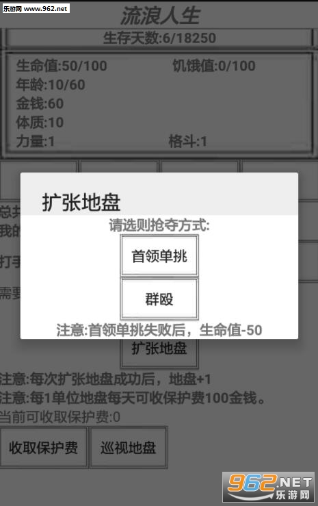 《流浪人生最新版》是一款纯文字冒险题材的模拟人生类游戏,该版本是无限金币破解版,玩家需要扮演一名捡瓶子的流浪汉,在游戏中需要发挥自己的聪明才智,与恶霸斗智斗勇扩张地盘,当然你也得保证自己的饥饿值和生命值,来避免自己英年早逝,游戏剧情设计非常不错,是款休闲耐玩的游戏。