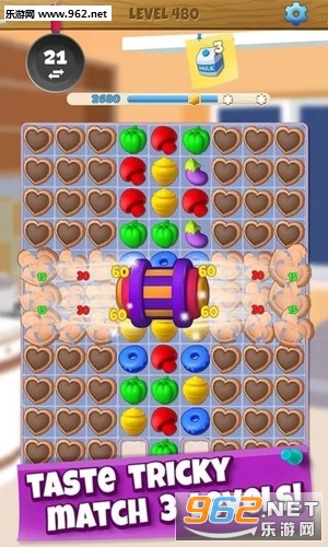 一切都非常简单!匹配相同的元件,在3,4个或更多的行排列它们。实现移动年底前的目标,并得到应有的奖励。